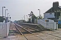 The station is unstaffed and has no permanent buildings other than basic shelters (the former station house is now a private residence). No ticketing facilities are offered, so all tickets must be bought on the train or prior to travel. Train running information can be obtained from timetable posters or a public telephone on platform 2. Step-free access is available to both platforms via the automatic barrier level crossing at the western end.[2]