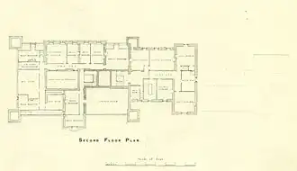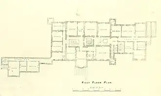 Between 1793 and 1799 the original manor house was replaced by one built in the neo-classical style for George Finch-Hatton and his wife Lady Elizabeth Murray, daughter of 2nd Earl of Mansfield to designs by Robert Adam's former draughtsman, Joseph Bonomi (1739–1808).[7] The new Bonomi designed house was built on a magnificent scale, with an imposing frontage, suites of splendid state apartments with accommodations for a large number of guests, beside the tastefully arranged garden, the interior resembles Bonomi and Robert Adam's famous decors.[6] This house was visited in 1805 by Jane Austen.