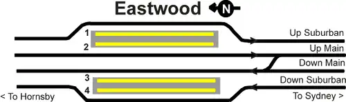 Eastwood railway station is located on the Main Northern line, serving the Sydney suburb of Eastwood. It is served by Sydney Trains' T9 Northern Line.