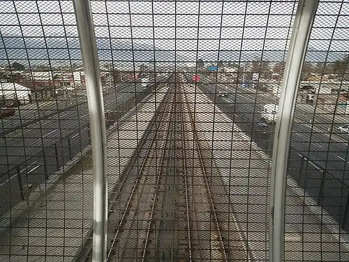 This station was half-way built, with only the platforms and the walkway that crosses the highway being finished, with the station building, stairs, elevators, turnstiles and the mezzanine (where the ticket offices would be located) still to be built.[3][4]