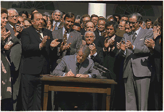 On 13 May 1977, President Carter hosted 25 mayors from the country's most financially struggling cities to watch him sign the $20.1 billion bill into law. The signing ceremony was held at the White House Rose Garden.[1]