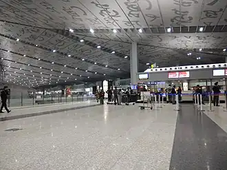 Spread over 2640 acres at Dum Dum in Kolkata, the largest in eastern India, the newly modernised Netaji Subhas Chandra Bose International Airport is the sixth busiest international airport in India in respect of aircraft movement (after Delhi, Mumbai, Bangalore, Hyderabad and Chennai). It has two asphalt runways, the primary one extended by 700 meters (3627 × 46m) and upgraded to CATIIIB, and the secondary one (3190 × 46m) upgraded to CATII ILS standards. Its terminal is a new and sprawling L-shaped six-level integrated terminal of over 2,510,000 sq ft inaugurated in 2013, able to handle 25 million passengers per annum. It includes check-in counters that use CUTE (Common User Terminal Equipment) technology, 78 immigration counters, 12 customs counters, passenger lounges provided by Air India and Jet Airways, 18 aerobridges, 57 remote parking bays, 2 underground two-leveled carparks and car parking facilities in landscaped area capable of handling 5000 cars. The airport has a Centre for Perishable Commodities (CPC), two luxury hotels and a shopping mall.