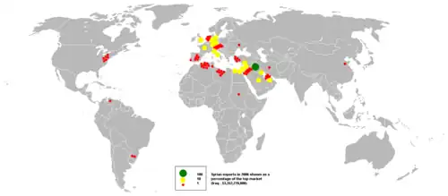 In 2015, Syria's main exports included spice seeds ($83.2 million), apples and pears ($53.2 million).[64]