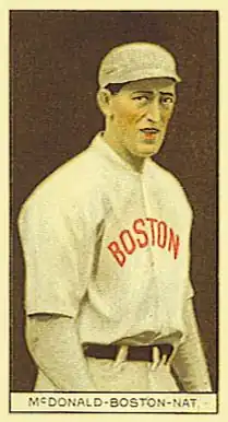 Edward Cyril McDonald (October 28, 1886 โ March 11, 1946) was a professional baseball player. He was a third baseman over parts of three seasons (1911โ13) with the Boston Rustlers/Braves and Chicago Cubs. For his career, he compiled a .244 batting average, with three home runs and 54 runs batted in.