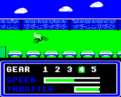 The player starts by riding away from the jump to get a big enough run up. They then must set the correct speed, correctly selecting gears, to hit the ramp with enough speed to clear the obstacles but not too much to miss the landing ramp. While in the air, the player can lean forward or back to land correctly.