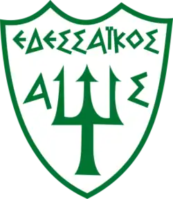 Edessaikos is a football club based in Edessa Greece. It was founded in 1960 when three local clubs – Aris, Iraklis, Ethnikos – merged.[1] Edessaikos was a founding member of the Pella Football Clubs Association in 1971.[2] The club has participated in the Greek Football A Division between 1993 and 1997. From 2010 to 2017, Edesaikos competed in the A1 League of Pella (fifth tier overall), after getting relegated from Delta Ethniki during the 2009–10 season. Edessaikos also has a well-organised youth academy system. Edessaiko's academies the season 2011–2012 was champions of the 1st group of Pella on 98–97 ages.