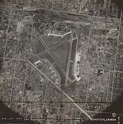 No. 2 Air Observer School (AOS), operated by Canadian Airways and Canadian Pacific Air Lines, opened at RCAF Station Edmonton on August 5, 1940. Later that year, on November 11, the Royal Canadian Air Force (RCAF) established No. 16 Elementary Flying Training School (EFTS), operated by the Edmonton Flying Club; this school was closed on July 17, 1942, to allow for an expansion of No. 2 Air Observer School. Upon winding down of the British Commonwealth Air Training Plan, No. 2 AOS was closed on July 14, 1944.[7] On 1 October 1955, all RCAF squadrons and support units were transferred to the "new" RCAF Station Namao. Blatchford Field was turned over to the Edmonton municipal government and became the commercial Edmonton City Centre (Blatchford Field) Airport.[8]