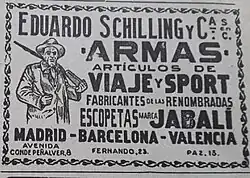 - ^ "Publicidad Eduardo Schilling escopetas Jabali" [Advertising Eduardo Schilling Jabali shotguns]. biblio.ie (in Spanish). 11 March 1909. Retrieved 10 February 2025.