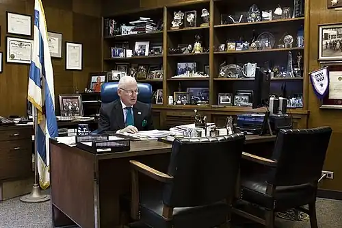 The chairmanship of the city council's Committee on Finance has been described as "the No. 2 spot in city government".[56] Almost all expenditures, tax matters, and many city contracts must be recommended by the Finance Committee before they can be considered by the full Council.[57][58] As Chairman of the Committee on Finance, Burke controlled a 63-member staff and $2.2-million annual budget, dwarfing the resources of other council committees. In the city's self-managed workers' compensation program, the Finance Committee determines and approves payment amounts in disability claims.[59][60] As Chairman of the Committee on Finance, Burke controls a $1.3M per year taxpayer-funded payroll account available to aldermen with no scrutiny. In 2008, Burke spent the largest portion of the account, $70,164, more than any other alderman by more than $26,000.[61] Burke is also a member of the city council's committees on Aviation; Budget and Government Operation; Energy, Environmental Protection and Public Utilities; and Zoning. Additionally, Burke is a member of the Chicago Planning Commission and Economic Development Commission. He controls three well-funded political action committees, the "Friends of Edward M Burke", the "14th Ward Regular Democratic Organization", and "The Burnham Committee".[62] In July 2009, Burke's campaign funds totaled $3.7 million, higher than any other alderman[63] and one of the largest in Illinois.[64] Illinois judges are elected in partisan elections, and a significant aspect of Burke's influence derives from his role as the longtime chairman of the judicial slating subcommittee of the Cook County Democratic Party.[65][66][67]
