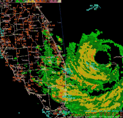 ![]() Hurricane Jeanne making landfall on Hutchinson Island near peak intensity on September 25 | |