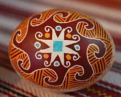 The tradition of egg decoration in Slavic cultures originated in pagan times,[1][2] and was transformed by the process of religious syncretism into the Christian Easter egg. Over time, many new techniques were added. Some versions of these decorated eggs have retained their pagan symbolism, while others have added Christian symbols and motifs.