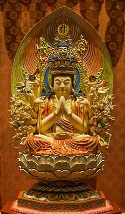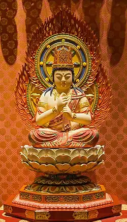 The Eight Guardian Deities are not mentioned in any traditional Buddhist scriptures. Besides Japan, they are also widely circulated in China Mainland, Hong Kong, Taiwan, and Chinese communities in Southeast Asia. Their images or seed syllables are often made into amulets, jewelry, thangkas,[4] Thai amulets, and creative industries. The Eight Guardian Deities are also enshrined in the Buddha Tooth Relic Temple and Museum, Singapore.[3]