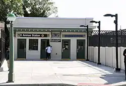 This station, along with eight others along the Sea Beach Line, was renovated from 2016 to 2019, which initially included installation of two ADA-accessible elevators (original plans were to construct two wheelchair ramps to each platform).[5] The Manhattan-bound platform was closed from January 18, 2016 to May 22, 2017 and a temporary platform was set up on the Coney Island express track for Manhattan-bound service.[6][7] The Coney Island-bound platform was closed from July 31, 2017[8][9] to July 1, 2019. During this time, southbound trains used the northbound express track and the temporary platform.[10]