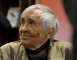 Rautavaara attended the University of Helsinki to study piano and musicology, and eventually studied composition at the Sibelius Academy under Aarre Merikanto from 1948 to 1952. He first came to international attention when he won the Thor Johnson Contest for his composition A Requiem in Our Time in 1954, despite having, according to Rautavaara, "...absolutely no experience of writing for brass band and [a] composition technique [that] was immature at the time..."[6] Nevertheless, the work prompted Jean Sibelius to recommend him for a scholarship to study at the Juilliard School in New York City. There he was taught by Vincent Persichetti, and he also took lessons from Roger Sessions and Aaron Copland at Tanglewood. Reflecting on his time enrolled in Juilliard, Rautavaara later said that living in Manhattan was, "Maybe the most important experience, [and] taught much more about life to me than all those teachers about music." He then returned to Helsinki and graduated from the Sibelius Academy in 1957, later choosing to study further in Switzerland that same year, under the tutelage of Swiss composer Wladimir Vogel. The following year, he traveled to Cologne, Germany to study under German composer Rudolf Petzold.[4][7]