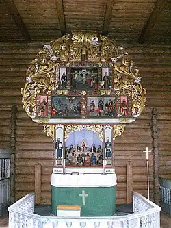 - Hegge Stave Church: altarpiece (1780), transported over the mountains by sled[1]