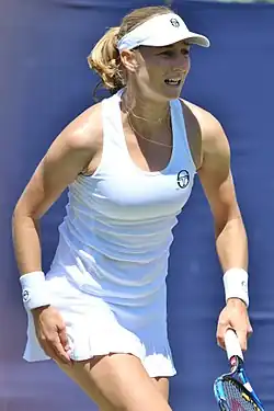 The following week, she reached the semifinals of the Birmingham Classic, losing to Melanie Oudin.[22] She reached the quarterfinals at Eastbourne but lost to Angelique Kerber. At Wimbledon, she defeated Alberta Brianti in the first round, before she was beaten again by Kerber.