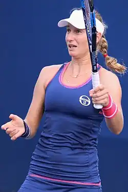 During the US Open Series, she reached semifinals at the Washington Open bot lost to eventual champion Magdaléna Rybáriková. She reached the second round at Toronto and Cincinnati, losing to Roberta Vinci and Jelena Janković, respectively. The week before the US Open, she reached the quarterfinals at New Haven, losing to eventual champion Simona Halep. At the US Open, she defeated third seed Agnieszka Radwańska in the fourth round to reach her third career Grand Slam quarterfinal, and first at the US Open.[24] She subsequently lost to fifth seed Li Na in three sets.[25]