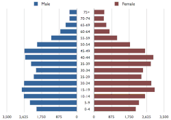 Data for 2000 shows that the largest age group to be 15- to 19-year-olds, representing 9.5% of El Hatillo's population; for every 100 females there are 94.2 males.[26] The unemployment rate in 2001 was 6.1%, ranking fourth lowest among the twenty-one municipalities in Miranda.[27]