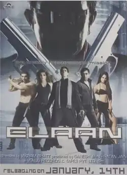 Elaan (Hindi pronunciation: [ʔeːlaːn]; transl. Declaration or Announcement) is a 2005 Indian Hindi-language action thriller film about five characters and their plan against one man. Produced by Ganesh Jain and Ratan Jai, written and directed by Vikram Bhatt, the film stars Arjun Rampal, John Abraham, Amisha Patel, Rahul Khanna, Lara Dutta, Mithun Chakraborty.[1][2]