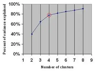 Because the two axes (the number of clusters and the remaining variance) have no semantic relationship, various attempt to capture the elbow by "slope" are ill-defined and sensitive to the parameter range.[3] Increasing the maximum number of clusters can change the location of the perceived "elbow", and in many cases alternate heuristics such as the variance-ratio-criterion or the average silhouette width are considered to be more reliable.[3] But even with such measures, the results may depend much on the data preprocessing (feature selection and scaling) and users may come to very different clustering results on the same data.