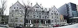 The Elizabeth Wirth Music Building (formerly the New Music Building) is one of two buildings belonging to the Schulich School of Music at McGill University, the other being the Strathcona Music Building directly adjacent to it. The building is located at 527 Sherbrooke Street West, on the corner of Sherbrooke and Aylmer Street in Montreal, Quebec and was designed in 2005 by the Montreal-based architectural firm Saucier + Perrotte.[1] The building officially opened in 2006,[2] and its construction was made possible through a donation of C$20 million from McGill alumnus Seymour Schulich to the Schulich School of Music.[3] The building was officially inaugurated as the Elizabeth Wirth Music Building on April 30, 2015, after the School received a donation of C$7.5 million from McGill alumna Elizabeth Wirth.[4][5]