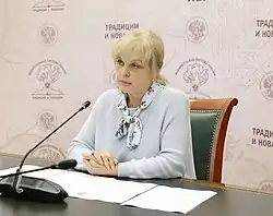 Ella Alexanderovna Pamfilova (Russian: Элла Александровна Памфилова; born 12 September 1953) is a Russian politician, former deputy of the State Duma, candidate for president in 2000 and former chairwoman (2004 - 2010) of the Presidential Council for Civil Society and Human Rights. On 18 March 2014, she became Russia's Commissioner for Human Rights, succeeding Vladimir Lukin. On 28 March 2016, she became the chairwoman of the Central Election Commission.