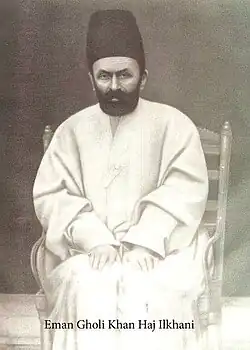 Emam Gholi Khan Haji Ilkhani (1825 Tehran - 1899 Ardal) was the great ilkhan of Bakhtiari tribe. He was second son of Jafar Gholi Khan Doraki and Bibi Shah Pasand. After killing his older brother, Hossein Gholi Khan ilkhani The great ilkhan of Bakhtiari tribe in isphahan He became The great ilkhan in Ardal, Iran. On 1899 The great ilkhan of Bakhtiari tribe death at Bakhtiari's government Center Ardal's Castle.