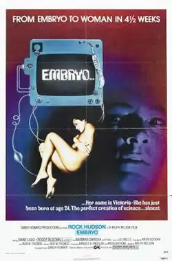 Embryo is a 1976 American science fiction horror film directed by Ralph Nelson starring Rock Hudson, Barbara Carrera, and Diane Ladd with a cameo appearance by Roddy McDowall.[1] It deals with the mental and physical consequences of growing a human embryo in an artificial uterus.