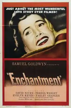 Enchantment is a 1948 American romantic drama film directed by Irving Reis and starring David Niven, Teresa Wright and Evelyn Keyes. It was produced by Samuel Goldwyn, and based on the 1945 novel A Fugue in Time by Rumer Godden.