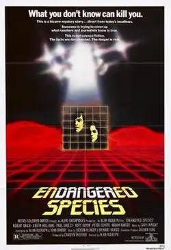 Endangered Species is a 1982 American science fiction horror film directed and co-written by Alan Rudolph, and starring Robert Urich, JoBeth Williams, Peter Coyote, and Hoyt Axton. It follows a former New York City police officer (Urich) who relocates to a rural Colorado town, where a newly appointed sheriff (Williams) is investigating a series of bizarre cattle mutilations.[3]
