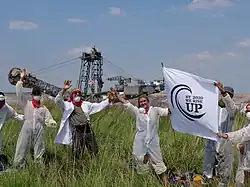 The youth climate movement Fridays for Future Deutschland (FFFD) called for an international protest event for climate protection in Aachen on the 21 June 2019, which drew 40000 people from 17 countries.[9] It was assumed that participants in the Fridays for Future demonstration would also participate in the actions of Ende Gelände.[10] In advance, the police had warned of an instrumentalization of Fridays for Future by Ende Gelände 2019, which was seen by many as a "deliberate attempt to divide the movement," but instead it led to public statements of solidarization of Fridays for Future with Ende Gelände,[11][12] stating that civil disobedience was a legitimate form of protest to save the future, but, in the demonstration on 22 June 2019 in Hochneukirch/Jüchen in the direct neighbourhood of the open-pit mine,[13] that Fridays for Future would remain on the legal side.[14][15][12]