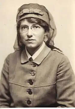 The concept of the Women's Hospital Corps was created and instituted in 1914. Previously met with hostility by officials, Doctors Flora Murray and Louisa Garrett Anderson decided to bypass the British government by going directly to the French Embassy with their offer to run a military hospital in Wimereux, France. Their idea was accepted and they were granted work permits to travel to France. In less than two weeks, Murray and Anderson were able to recruit enough medically trained women to staff an entire hospital; doctors, nurses, orderlies, and clerks. The women created uniforms and raised funds for the supplies needed.[1] Visitors to the hospital in France included Queen Amélie of Portugal.[2] The hospital closed in January 1915 when injured soldiers started being treated in England rather than in France.[3]