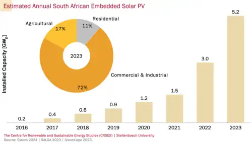 - ^ Burkhardt, Paul (12 June 2024). "Solar Installments Slow in South Africa After Blackouts Ease". www.bloomberg.com. Retrieved 16 June 2024.