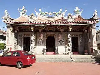 Eng Chuan Tong Tan Kongsi (Chinese: 穎川堂陳公司; Pe̍h-ōe-jī: Éng-chhoan-tông Tân-kong-si) is a Hokkien clan house at Beach Street in George Town, Penang, Malaysia. It was founded in the early 19th century by a Tan family from the Fujian province of Zhangzhou in China.[1] The building is a place of worship devoted to Kai Zhang Sheng Wang (開漳聖王; Pe̍h-ōe-jī: Khai-chiang Sèng-ông) or Tan Goan-kong (陳元光), the founder of Zhangzhou, and his two deputies, Generals Fushun and Fusheng. It was also the ancestral temple of Tan clansmen for the purposes of cultural integration. Members of the Tan family worship their ancestor, Tan Guan Kong.[2]