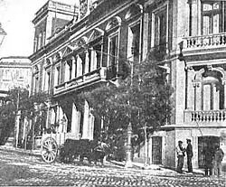 In 1871, Enrique married the mother of his university colleague, Manuela Inocencia Serrano y Cerver from Valencia,[14] thirty years his senior and widow of the military and senator Antonio del Valle y Angelín;[15] she brought into the family the children from her previous marriage.[16] Immediately afterwards, the couple travelled extensively[17] and started construction of the family residence in Madrid. In 1893, the family moved into the freshly-completed building at calle Ventura Rodríguez, designed in eclectic style[18] by renowned architects and from the outset intended to be also an art gallery, very much like the private pinacotecas seen across Europe.[19] The building – usually referred to as a palace – served later also as a prestigious venue of social meetings, reported the day after by the Madrid press,[20] and a location for political assemblies. The couple had no issue.[21]
