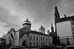 So by 1917 the Epiphany Church complex included three churches. The main one: cold, two-domed in honor of the Epiphany of the Lord with the side chape of the Holy First Martyr and Archdeacon Stephen. The second one: warm, two-domed in honor of St. Andrew the Apostle with the side chapel of the Holy Martyrs of Prince Michael of Chernigov and his Boyar Fyodor; the third - cold, single-domed. And the third one: cold, single-domed, built in 1902 on the second level of the new bell tower in honor of the Third Epiphany.[1] The Epiphany Church served as the city's cathedral during the Soviet period, from 1920 until it was closed in 1935.[7]