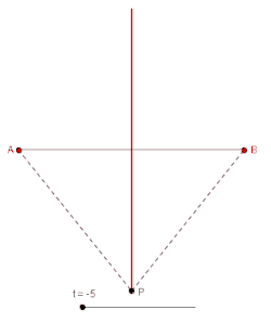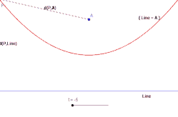 In mathematics, an equidistant set (also called a midset, or a bisector) is a set whose elements have the same distance (measured using some appropriate distance function) from two or more sets. The equidistant set of two singleton sets in the Euclidean plane is the perpendicular bisector of the segment joining the two sets. The conic sections can also be realized as equidistant sets. This property of conics has been used to generalize the notion of conic sections.[1] The concept of equidistant set is used to define frontiers in territorial domain controversies. For instance, the United Nations Convention on the Law of the Sea (Article 15) establishes that, in absence of any previous agreement, the delimitation of the territorial sea between countries occurs exactly on the median line every point of which is equidistant of the nearest points to each country.[1] Though the usage of the terminology is quite old, the study of the properties of equidistant sets as mathematical objects was initiated only in 1970's.[1][2]