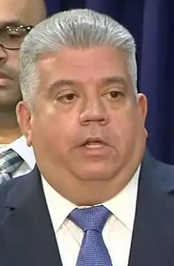At the next year's election, Gonzalez won a six-way Democratic primary with 53% of the vote on September 12, 2017.[12] He was elected in November 2017 with no Republican candidate opposing him,[13][14][15] and was sworn in on January 21, 2018.[16] He is the first Latino to serve as district attorney in New York.[17]