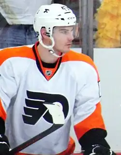 Wellwood was drafted by the Philadelphia Flyers in the sixth round (172nd overall) of the 2009 NHL Entry Draft. He signed a three-year, entry-level contract with the Flyers on March 4, 2010, after playing four seasons of junior hockey with the Windsor Spitfires, with whom he helped win two straight Memorial Cup championships in 2009 and 2010.[1] Wellwood was called up from the Adirondack Phantoms on November 1, 2010, in the wake of Flyers forward Danny Briere's three-game suspension and made his NHL debut against the Carolina Hurricanes on a line with James van Riemsdyk and Mike Richards.[2] Wellwood recorded his first NHL point on November 6 against the New York Islanders, assisting on Andreas Nodl's game-winning goal at 14:35 of the third period.[3] During the 2011 Stanley Cup playoffs, the Flyers called up Wellwood and a few other players, but he did not dress for a game.[4] Wellwood scored his first NHL goal February 18, 2012, against the Pittsburgh Penguins, an unassisted goal against Marc-Andre Fleury.[5]