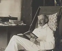 Succeeding Eberhard Gudowius, Langenn-Steinkeller's first tenure as colonial resident in Burundi lasted from April to September 1909, when he was replaced by Otto Brentzel.[6] In May 1911, Langenn-Steinkeller –promoted to Major– was again appointed as colonial resident of Burundi.[7] In 1912, he moved the seat of the German administration from Usumbura to Gitega, close to the traditional heartland of the Burundian monarchy. His exact reasoning for this decision is disputed. Researchers variously interpreted it as an acknowledgement of the monarchy's importance, as an attempt to better implement a divide and rule strategy, or as the result of Gitega's central location, allowing the colonial authorities better access to all parts of the country.[7][8] In general, Langenn-Steinkeller encouraged various chiefs to resist the Burundian monarchy by recognizing their formal independence from the court. The resulting infighting among the native nobility allowed the resident to control Burundi without relying on a substantial number of colonial soldiers.[9] Around this time, Langenn-Steinkeller also had to deal with conflicts between Protestant missionaries and the Catholic White Fathers; the latter, alongside their native allies including mwami (king) Mutaga IV of Burundi, opposed the creation of a Protestant mission in Burundi. The colonial resident was unenthusiastic about the Protestant missionaries' project, and offered very little support.[10]