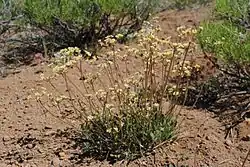 This is a dioecious mat-forming sub-shrub which grows on sandy mountain soils. It forms patches of wavy-edged pale green leaves and has erect, branching inflorescences reaching heights of anywhere from 10 to 40 centimeters.