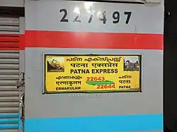 ![]() Ernakulam–Patna SF Exp Train Board | |