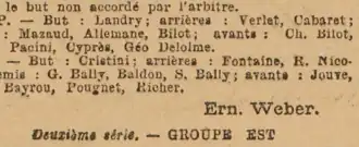 - ^ For instance, on 6 March 1904, in a 2nd series match of the USFSA Paris championship between the second teams of United SC and Racing Club de France, Weber scored his side's only goal in a 1–3 loss.[13]