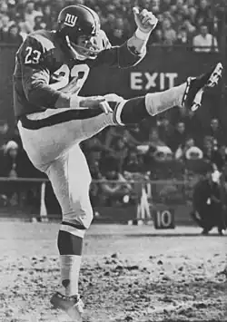 During his six years in the NFL, Koy played in 79 games, carried 414 times and gained 1,723 yards.[3] He also has 498 receiving yards with 76 receptions, many from future Hall of fame Giants quarterback Fran Tarkenton (1967-1971).[3][31][32] In addition, he completed six passes in 12 attempts, with one touchdown and one interception.[3] Koy was also the Giants' punter with a 38.5 yard average on 223 punts over six years. He also returned 30 kicks during his career.[3]