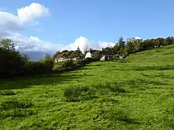 In 1773 the mansion house was a ruin, with only a tower remaining.[11] In 1902 "Irishborough manor house" was the property of Rev. Henry Tubal Hole, Rector of Plympton St. Maurice.[40] The site is today covered by the central settlement of "West Irishborough", which in the 18th century had the status of barton[41] or principal farm, and to the east on the edge of the historic curvi-linear estate, "Tower Farm",[8] believed to have been the site of the mansion house[42] of the Mules family.