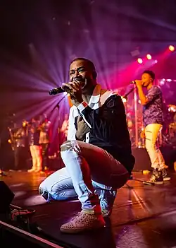 Erotica was further promoted on the Girlie Show, Madonna's fourth concert tour.[64] Seen as an attempt to "revive" her musical career after the critical and commercial failure of Body of Evidence, an erotic thriller which she starred, it began in London on September 25, 1993, and ended in Tokyo on December 19.[64][65] It was initially planned not to visit the United States, instead focusing on regions the singer had never toured before, such as Turkey, Israel, Mexico, Puerto Rico, South America and Australia. However, due to demand, some shows were booked in certain US cities.[66] Madonna opened the show dressed as a dominatrix surrounded by topless dancers, while lighter moments included her descending from the ceiling on a giant disco ball wearing an Afro wig for "Express Yourself" (1989), as well as singing "Like a Virgin" (1984) in the guise of actress Marlene Dietrich.[67][68][69] The tour received generally positive reviews from critics, and was commercially successful, with a gross of $70 million from 39 concerts.[70][71][72] Several organizations in different countries protested to force the cancellation of the concerts, due to their explicit sexual nature. In Puerto Rico, Madonna passed the island's flag between her legs on stage, resulting in outrage among Puerto Rican society;[73] Orthodox Jews staged protests to force the cancellation of the concerts in Tel Aviv to no avail.[73]