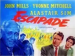 Escapade is a 1955 British comedy drama film directed by Philip Leacock and starring John Mills, Yvonne Mitchell and Alastair Sim.[1] It was based on a long-running West End play of the same name by Roger MacDougall.[2]