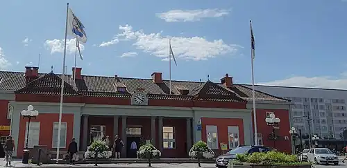 The original station building was completed in 1876.[2] In 1895, the opening of the Norra Sörmland Railway led to the renaming of OFWJ's station to Eskilstuna Central Station.[3] The station underwent significant renovations in 1924, giving it its present appearance. The architectural design was done by Adolf W. Edelsvärd, who was responsible for many Swedish railway stations.