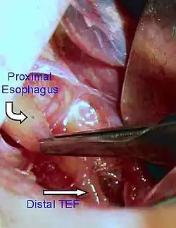- ^ Way, Colin; Wayne, Carolyn; Grandpierre, Viviane; Harrison, Brittany J.; Travis, Nicole; Nasr, Ahmed (2019-11-01). "Thoracoscopy vs. thoracotomy for the repair of esophageal atresia and tracheoesophageal fistula: a systematic review and meta-analysis". Pediatric Surgery International. 35 (11): 1167–1184. doi:10.1007/s00383-019-04527-9. ISSN 1437-9813. PMID 31359222.