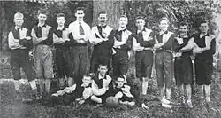 The football team in the early years. Club's founder, Hans Nobiling (with tie) poses with the players.